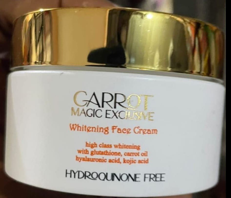 High class whitening with glutathione, carrot oil, hyaluronic acid, kojic acid.